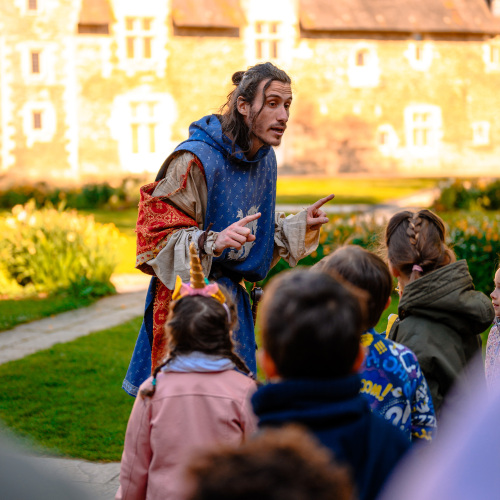 Visite des princesses et chevaliers - C'est la fête! Depuis que le Roi Louis XI a annoncé sa venue au Plessis-Macé, tous les habitants du château s'affairent pour préparer une grande fête. Jeunes princesses, jeunes chevaliers venez les aider à accueillir le Roi comme il se doit! Au programme: banquet, bal et tournois/jeux.